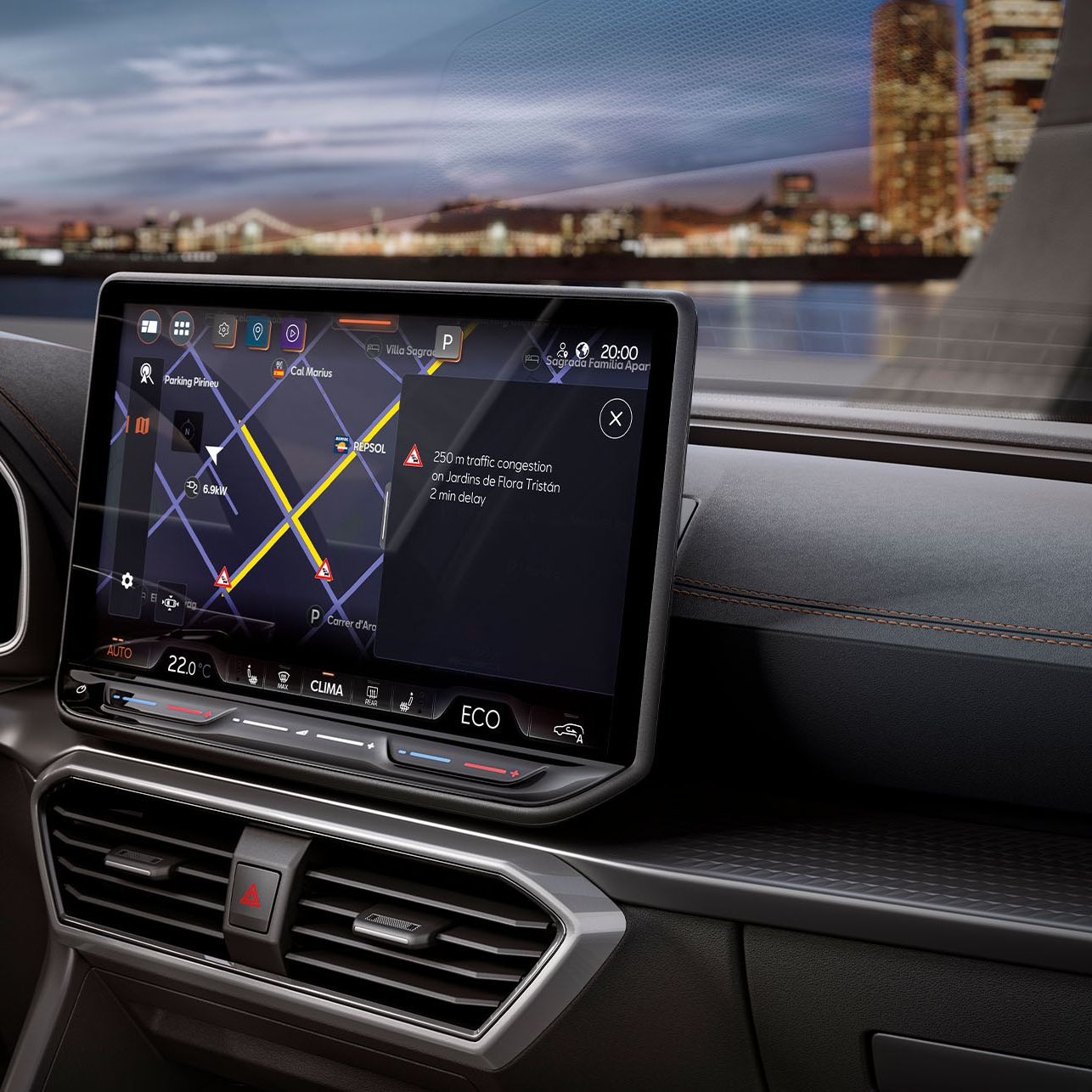 Bucură-te de conectivitate perfectă cu CUPRA CONNECT prin intermediul sistemului de navigație de 12,9 inchi și beneficiază de hărți online, divertisment, recunoaștere vocală și multe altele.
