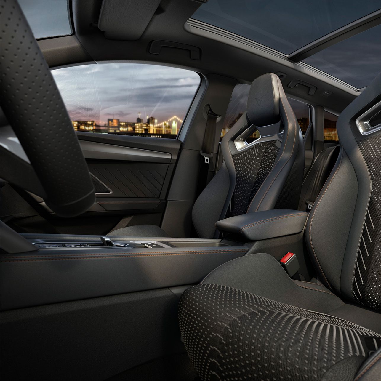Banda continuă de lumini spate care extinde orizonturile și inspiră privitorul. Cu logo-ul 3D CUPRA complet integrat și iluminat în centru.