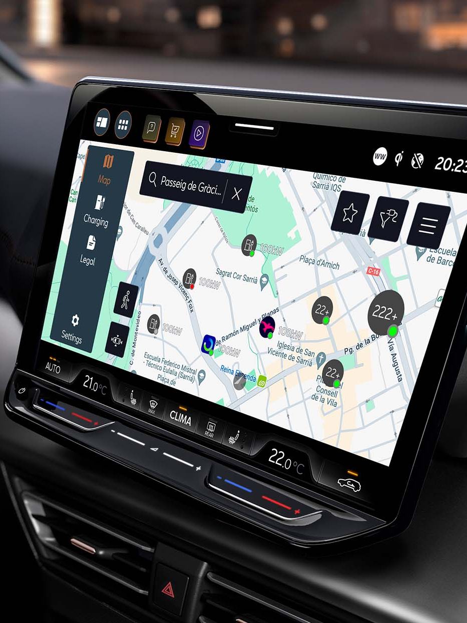 Descarcă Charging Map gratuit (0 €) prin intermediul aplicației My CUPRA de pe telefon și de pe ecranul tactil al vehiculului tău, apoi bucură-te de acces la stațiile de încărcare din întreaga Europă.