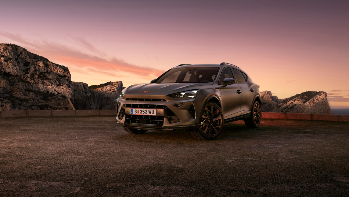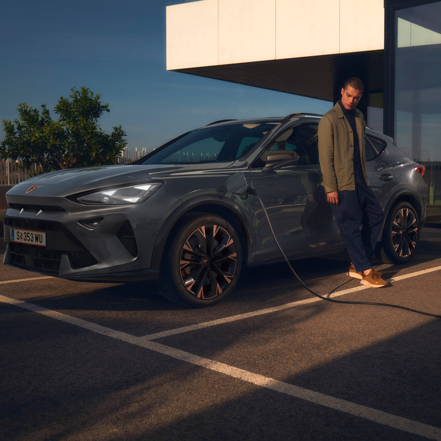 Și CUPRA Formentor e-HYBRID se remarcă printre modelele hibride de la CUPRA prin designul său sofisticat. Noua parte frontală cu design Shark Nose conferă vehiculului un aspect puternic. În același timp, mașina hibridă are un aspect elegant și unic datorită liniilor sale sculptate. CUPRA Formentor e-HYBRID este echipat cu o cutie de viteze automată cu 6 trepte. Cu Wallbox-ul potrivit, poți încărca vehiculul confortabil și poți controla și monitoriza procesul de încărcare prin smartphone-ul tău. Complet încărcat, hibridul oferă o autonomie complet electrică de peste 100 km. Designul inovator și o putere de până la 272 CP sunt astfel combinate în acest e-HYBRID.