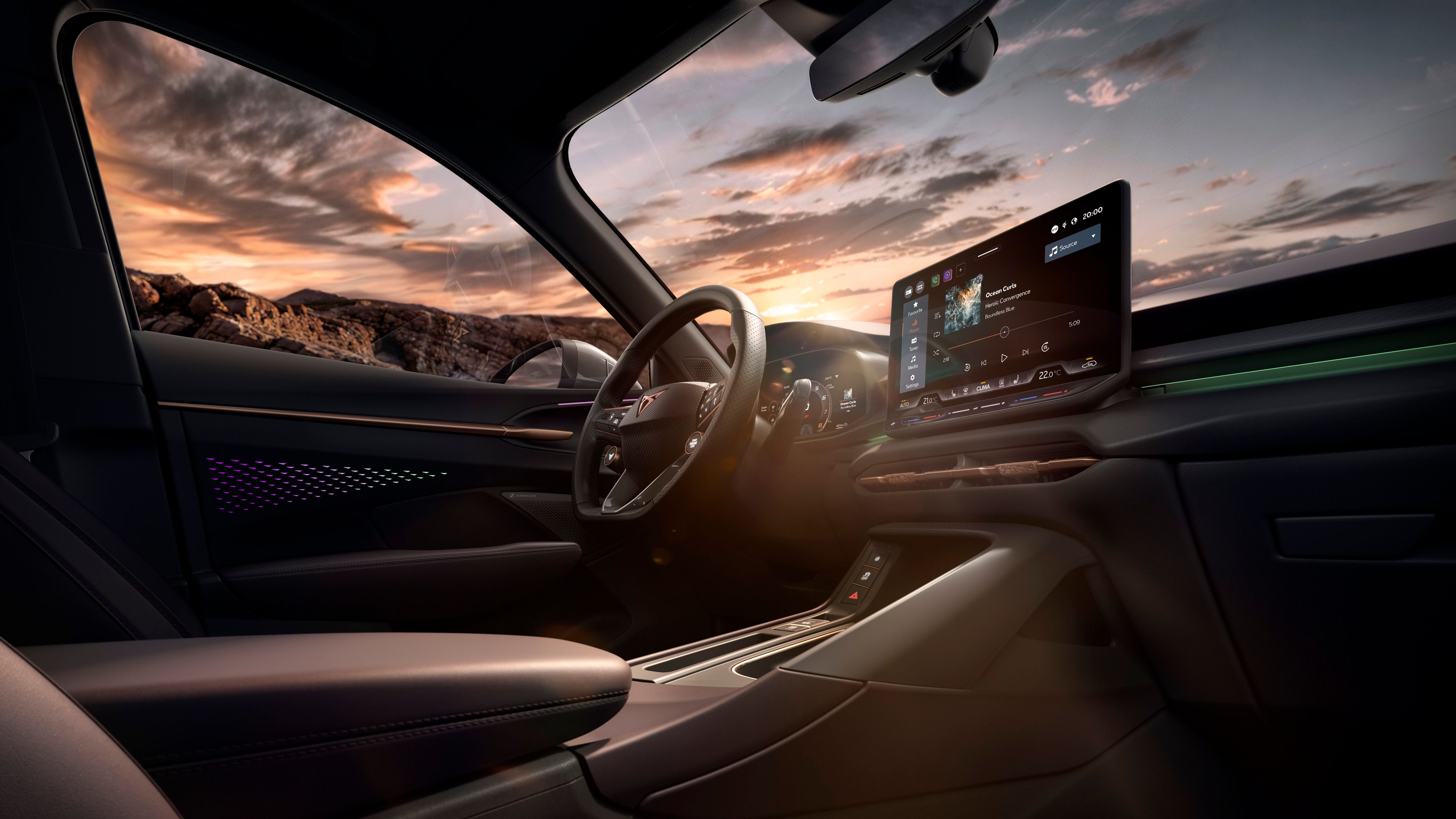 Emoții amplificate, tehnologie de iluminare inteligentă și iluminare ambientală în interior, parte a interiorului CUPRA Terramar. Inconfundabilul CUPRA.